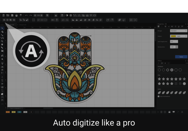 Chroma Plus offers all the tools you need to create digitized designs and lettering. This easy-to-use digitizing software allowsyou to digitize designs from start to finish and personalize designs to your liking with its font library, fill selection and more.